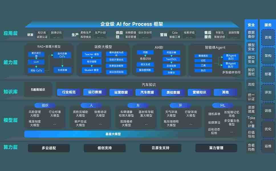 端到端的一站式AI工作空间深度融合了从企业战略规划到日常经营的全流程业务板块,,,定向解决车企内部领域多、、、、部门多、、、、链条长、、场景碎片化等难题,,支持车企快速构建以AI为核心的生产力写作体系,,,,实现任务执行与AI能力的无缝集成与交互